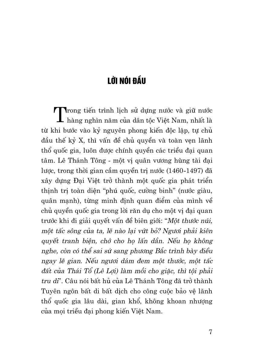 Nội dung cuốn sách trình bày lịch sử giản yếu từ thời nguyên thuỷ đến nay, phản ánh quá trình xây dựng và bảo vệ đất nước Việt Nam thống nhất từ Mục Nam Quan