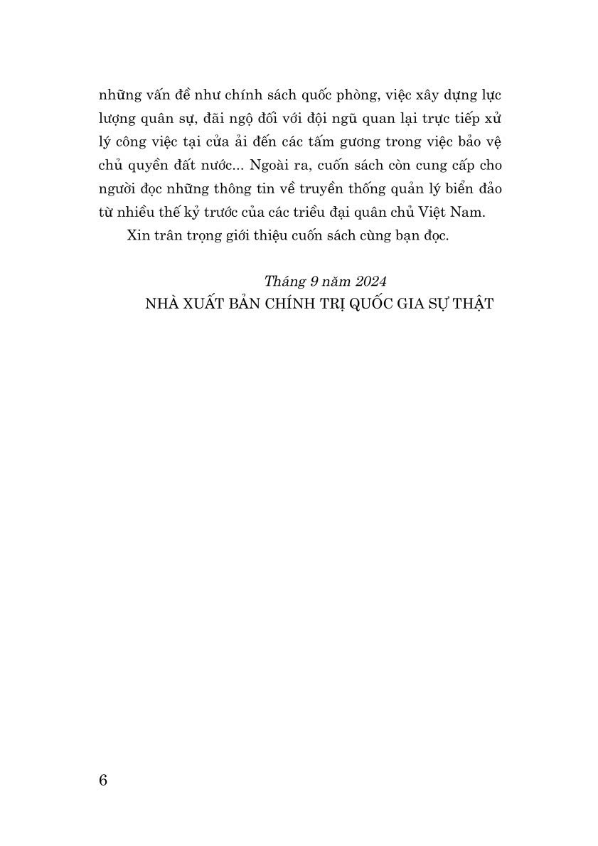 Cuốn sách góp phần truyền đạt thêm nhiều thông tin chính xác và những bài học bổ ích cho bạn đọc quan tâm, đặc biệt là các thế hệ trẻ đang kế tục gánh vác
