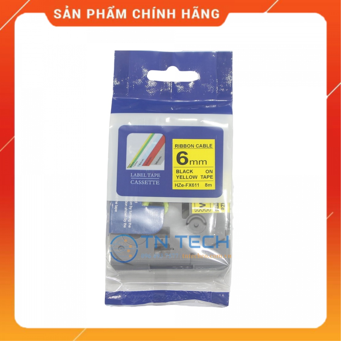 Loại sản phẩm: Ống co nhiệt Brother HS2-611 • Mã SP: HS2-611. • Màu sắc: Chữ đen nền vàng. • Kích thước: 5.8mm (rộng)* 1.5M (dài)- dùng cho dây lõi : Ø1.8mm đến Ø 3.5mm.