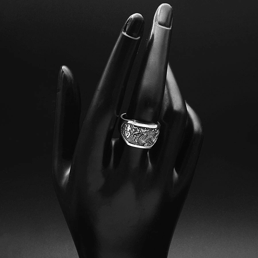 Nhẫn Nam đính hạt chạm khắc Rồng - T0242 Chất kiệu: hợp kim bạc Có nhiều size từ 6 đến 13 Quí khách xem bảng size và hướng dẫn đo size trên ảnh nhé Mẫu