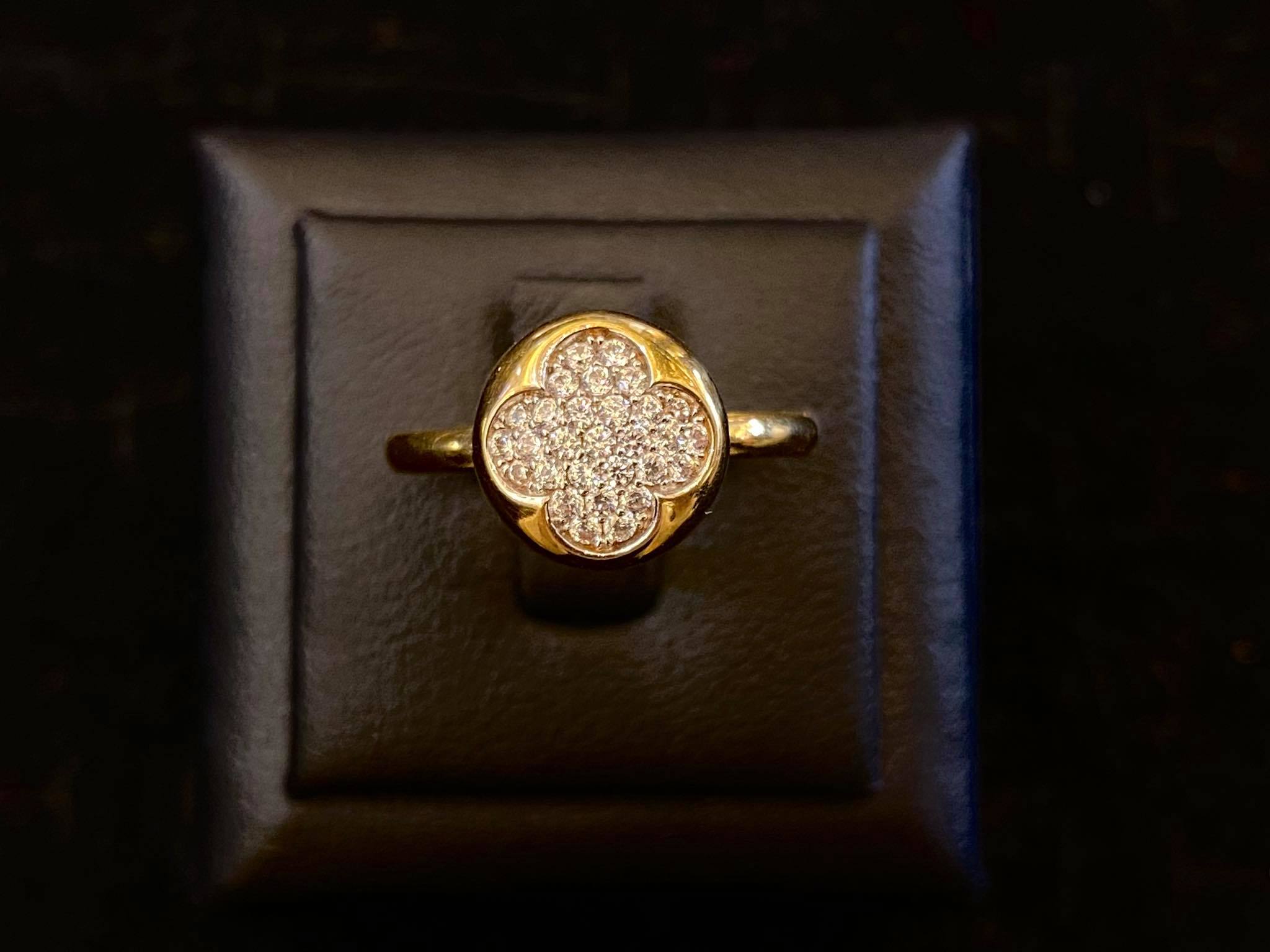 ✨nhẫn vàng 18k mặt tròn hoa đính đá