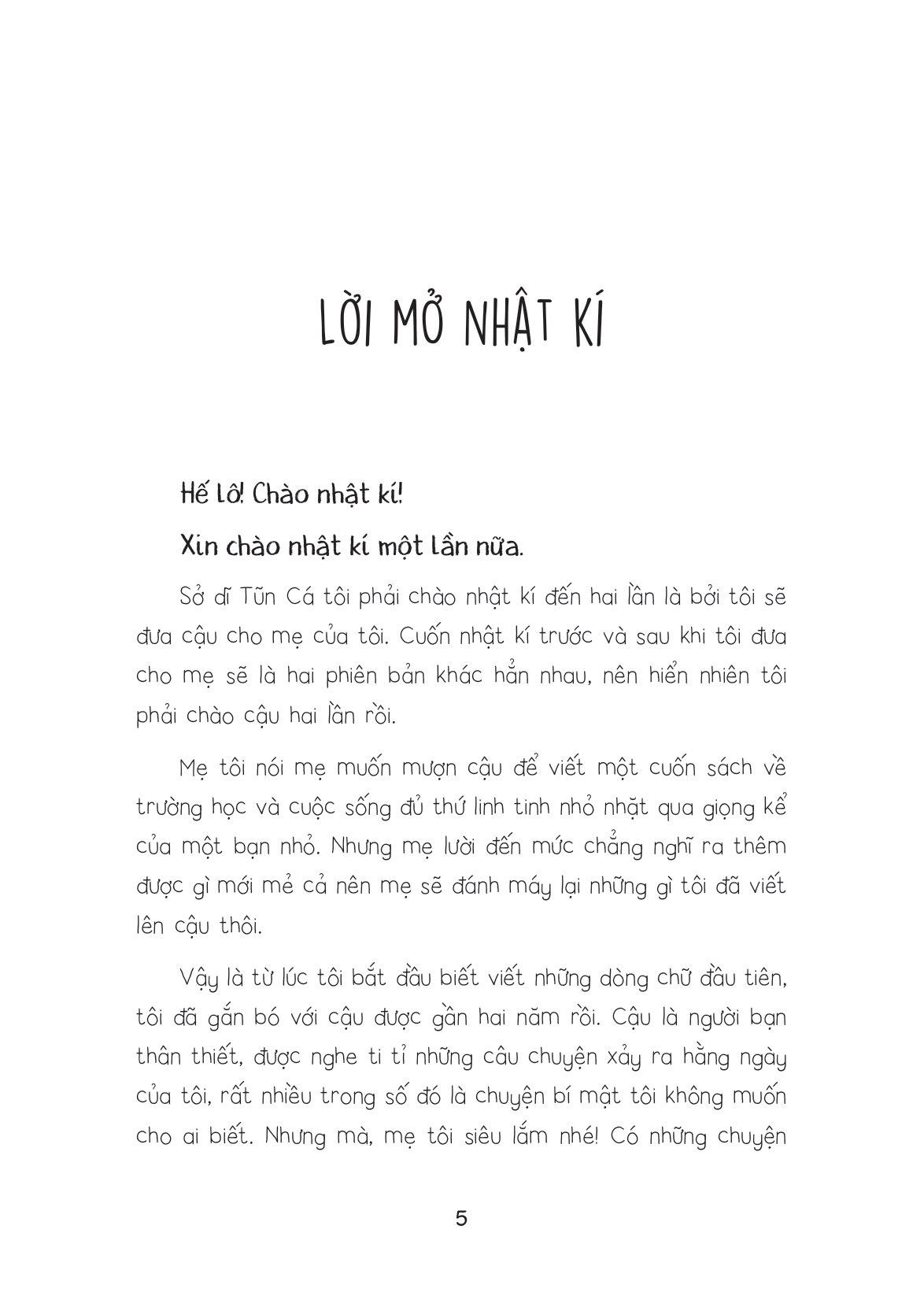 Mình là Tũn Cá, Fishy và cả Bống nữa. Bạn có thể gọi m.ình bằng tên nào cũng được, miễn là sau này, khi m.ình mở tiệm bánh, bạn mang tiền đến mua thật nhiều bánh cho m.ình là được. Năm nay m.ình bảy tuổi, học chưa giỏi và chữ viết cũng chưa đẹp. Ước mơ của m.ình là có bảy người mẹ giống hệt mẹ của m.ình bây giờ vì một mẹ thì chả bao giờ đủ cả. Lí do vì sao thì bạn hãy đọc cuốn nhật kí này là biết ngay! Khì khì!