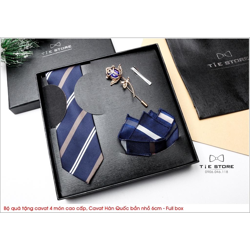 Cavat nam bản 8cm lót silk cao cấp nguyên hộp kèm khăn và khuy măng sét Giangpkc Qtp Sản phẩm cao cấp nguyên hộp quà tặng bản 8cm thích hợp cho trung niên - công