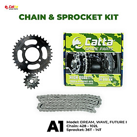 Nhông sên dĩa Dream (bộ nhông xích Dream) thương hiệu CATTA Spare Parts được sản xuất từ thép carbon S45C chuyên dụng trong ngành công nghiệp nhông sên dĩa. Do đó, sản phẩm đạt chất lượng cao về độ cứng, độ bền, khả năng chịu tải trọng lớn, đạt tiêu chuẩn quốc tế dành cho các sản phẩm truyền động.
