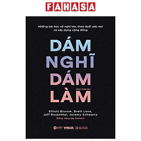 - Bất kỳ ai muốn đạt được mục tiêu lớn: Dù bạn đang làm việc trong lĩnh vực nào, cuốn sách này đều có thể cung cấp cho bạn những động lực và cảm hứng để đạt được những thành công vượt trội. II. TÓM TẮT SÁCH Năm 2008, bốn chàng trai trẻ tuổi, chưa có nhiều kinh nghiệm Elliott Bisnow, Brett Leve, Jeff Rosenthal và Jeremy Schwartz làm quen với nhau và bắt đầu tổ chức một sự kiện quy tụ những nhà khởi nghiệp trẻ triển vọng nhất nước Mỹ lúc bấy giờ. Trải qua nhiều thách thức và nhiều lời từ chối cũng như khó khăn về tài chính - như bất cứ công ty mới khởi nghiệp nào, họ đã phát triển Summit thành một cộng đồng toàn cầu với các sự kiện trên khắp thế giới, với sự tham gia của nhiều nhân vật nổi tiếng bao gồm Jeff Bezos, Richard Branson, Sam Altman (CEO OpenAI), Tony Hsieh (CEO quá cố của Zappos), Evan Williams (đồng sáng lập Twitter), Garrett Camp (đồng sáng lập Uber), Jessica Alba (diễn viên)... Năm 2013, các nhà sáng lập Summit đã mua lại Powder Mountain, khu nghỉ dưỡng trượt tuyết lớn nhất nước Mỹ với ước mơ xây dựng một thị trấn trên đỉnh núi của tương lai. Trong Dám nghĩ dám làm, các tác giả tiết lộ những chiến thắng, sai lầm và bài học từ hành trình của mình, bắt đầu trong thời kỳ Đại suy thoái và tiếp tục cho đến ngày nay. Cùng với những bài học từ một số doanh nhân truyền cảm hứng nhất lúc bấy giờ, các tác giả cung cấp những ý chính quan trọng: • Bất cứ ý tưởng nào đều nên được nói ra. • Mua danh ba vạn, bán danh ba đồng. • Không có đường tắt dẫn đến thành công. • Xây dựng mối quan hệ là điều quan trọng nhất. Dám nghĩ dám làm cho thấy bất kỳ ai cũng có thể nghĩ lớn và - với khát khao kiến thức, một đội ngũ tài năng và một chút khiêm tốn - đạt được điều không thể. III. CUỐN SÁCH CÓ GÌ ĐẶC BIỆT