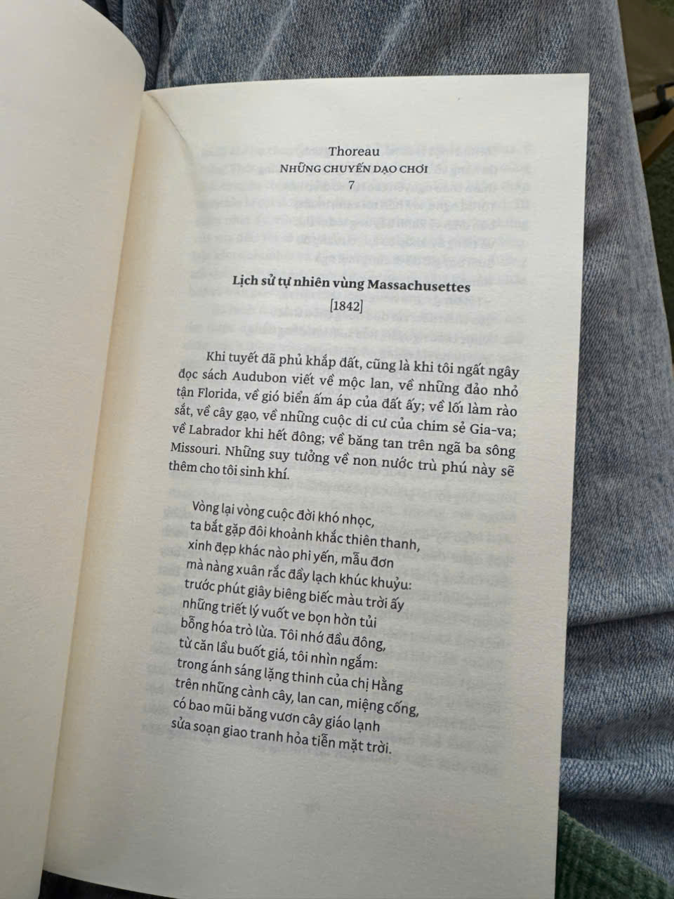 Ở đây chủ yếu biết đến Thoreau của Walden hay Civil Disobedience, nhưng như thế thì cũng chẳng khác nào chỉ biết Tocqueville của Nền dân trị Mỹ, bỏ mất phần lớn nhất, về lịch sử Cách mạng. Những chuyến dạo chơi là Thoreau về tự nhiên, nhưng không phải chuyện chui vào rừng sống. Thoreau đi dạo, quan sát, sắp xếp và tưởng tượng. Cả một thế giới mở ra, đầy tràn, trong suốt, từng chi tiết nhỏ nhất hiện ra mồn một, vậy mà không có chi tiết nào thừa.