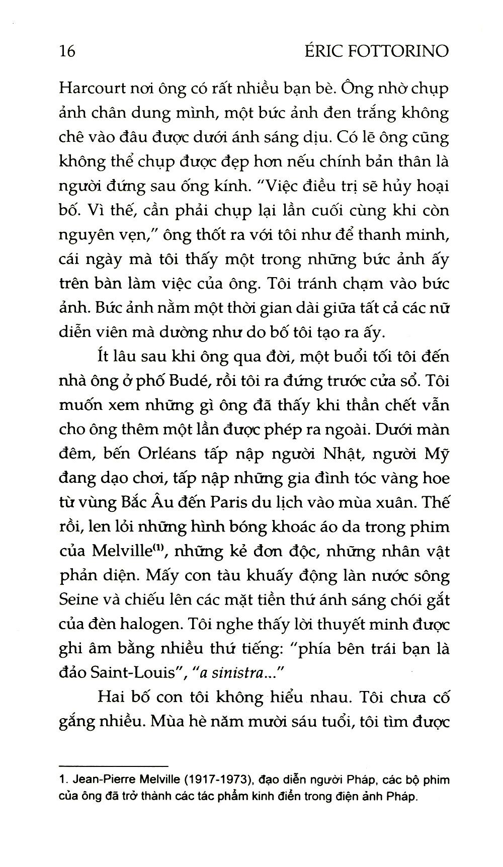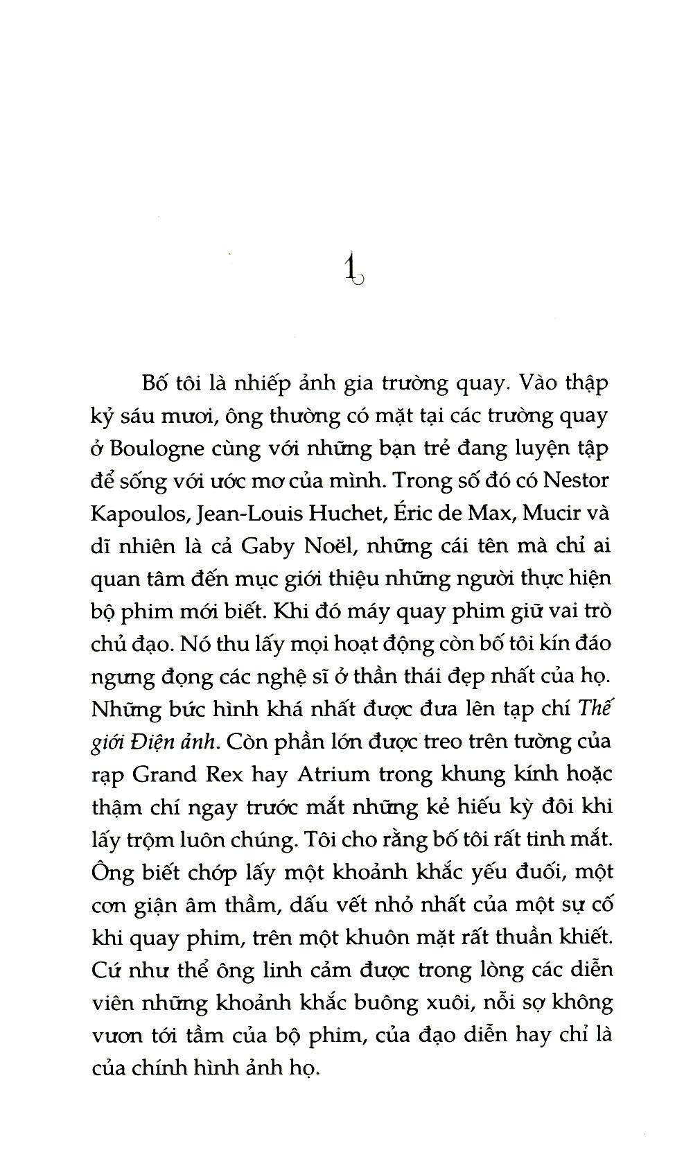 Eric Fottorino tặng cuốn tiểu thuyết thứ tám những từ ngữ êm dịu, gần như mong manh, để tôn vinh điện ảnh, để kể về một thời đã qua, khi tình yêu vẫn còn có thể hiện ra như một trò chơi mạo hiểm.