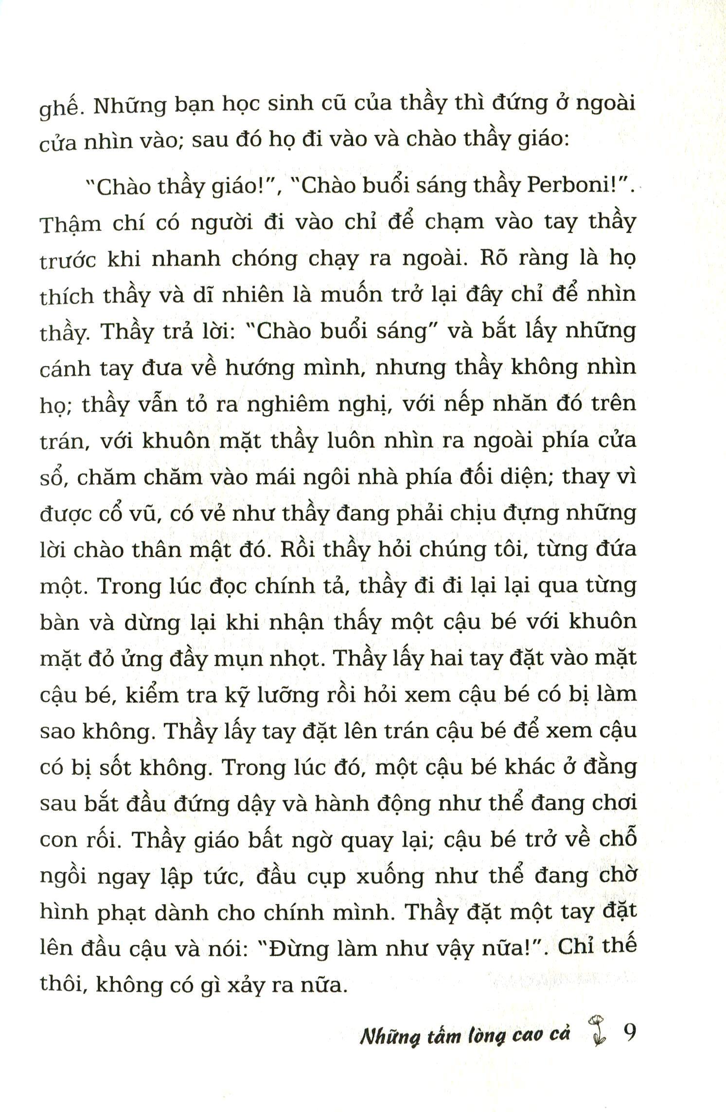 Xuyên suốt tiểu thuyết là những vấn đề xã hội như sự nghèo đói, Những tấm lòng cao cả được yêu chuộng vì văn phong giản dị và ý nghĩa giáo dục về tình nhân áững tấm lòng cao cả được viết theo hình thức nhật ký của Enrico Bottini, một cậu học trò 10 tuổi học tiểu học ở Ý. Gia đình cậu thuộc tầng lớp thượng lưu trong khi nhiều bạn cùng lớp lại xuất thân từ tầng lớp lao động. Cốt truyện diễn ra theo thứ tự thời gian xuyên suốt năm lớp 3 của Enrico. Ở đó Enrico đã được tiếp xúc với những cậu bé đủ mọi tính cách …