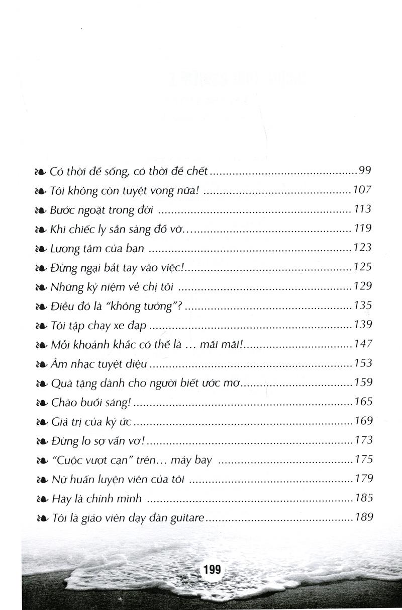 Băn khoăn đi tìm câu trả lời cho những câu hỏi đó, tức là bạn đã trải nghiệm và mong muôn tự đúc kết cho mình những bài học quý giá! Chắc chắn rằng, cuộc sống của chúng ta không phải là chuỗi ngày trôi qua nặng nê, buồn bã một cách vô định. Cuộc sống có rất nhiều lĩnh vực phong phú khác nhau. Mỗi lĩnh vực luôn chứa đựng những bài học vô giá của riêng nó. Những bài học ấy chứa đựng thái độ ứng xử của chúng ta đối với cuộc đời, đối với người khác và đối với chính bản thân mình! Chúng ta có thể sống và dần dần trải nghiệm, khám phá và đúc kết nên những trải nghiệm vô giá của mình! Nói cách khác, câu trả lời sẽ đến từ chính cuộc sống của mỗi người.Tập sách này chứa đựng những câu chuyện, tâm sự của nhiều người, ở khắp nơi, ở nhiều cảnh ngộ khác nhau nhưng tất cả đều có chung một khát vọng sống một cuộc sống cao thượng hơn, hạnh phúc hơn! Chính điểm chung này đã cô đúc nên nội dung của tập sách.