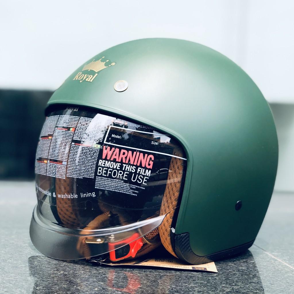 ✨Nón bảo hiểm 3/4 ROYAL M139 có kính âm màu XANH LÍNH NHÁM