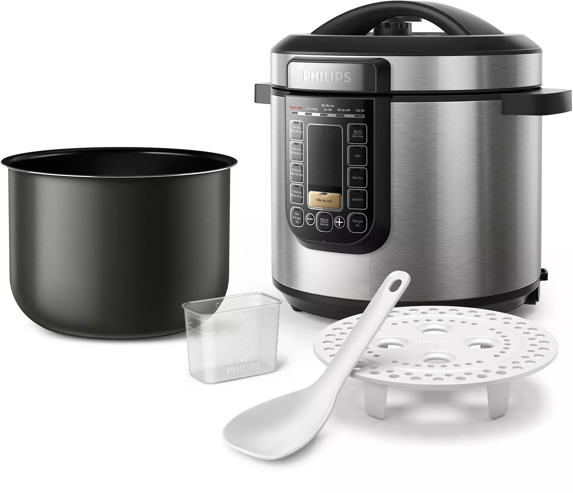 Đặc điểm nổi bật - Nồi áp suất đa chức năng : nấu cơm, nấu cháo, hầm gân, ninh, súp, hấp, giữ ấm - Dung tích : 6.0 lít phù hợp gia đình 4 - 6 người.