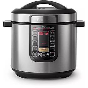 Philips HD2237/66 – Nồi áp suất điện 6L, 1300W chính hãng - Kiểu dáng hiện đại – Bền bỉ: Vỏ ngoài inox mờ chống xước, sang trọng, dễ vệ sinh. - Lòng nồi hợp kim