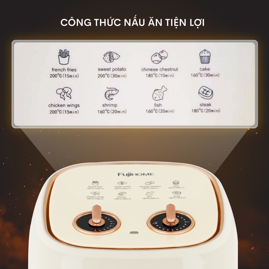 ✨Nồi chiên không dầu 6.5L nhập khẩu Nhật Bản Fujihome A6W tự ngắt an toàn chống dính cao cấp - hàng chính hãng