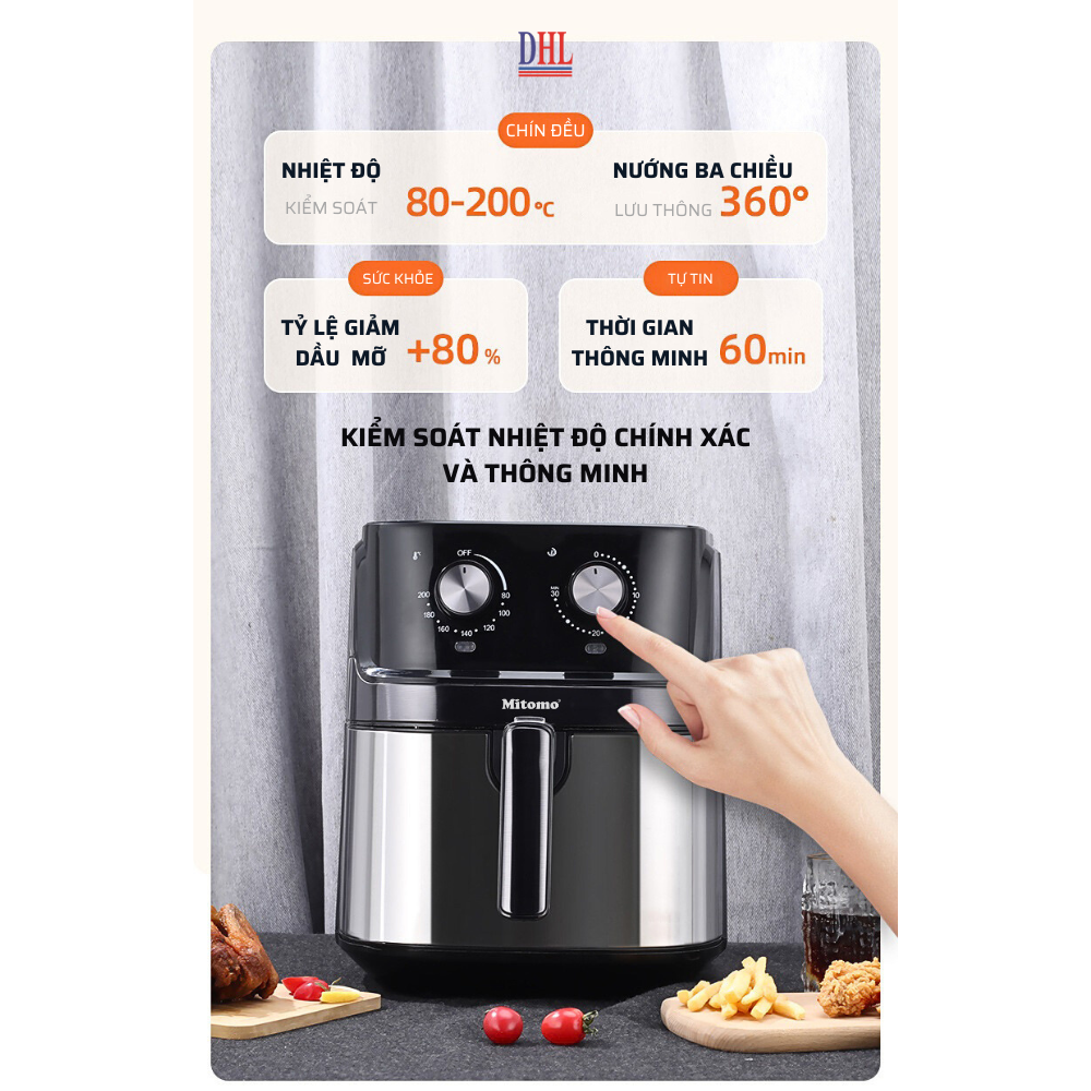 Mua tại Tiktok Nồi chiên không dầu Mitomo MTD-6LH được thiết kế với kiểu dáng hiện đại, thân máy được làm từ vật liệu cao cấp, dễ dàng vệ sinh và an toàn tuyệt đôi cho sức
