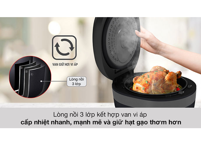 Van vi áp giúp tăng áp suất hơi bên trong lòng nồi đạt tới 300 Pa, khiến hạt gạo thơm hơn.