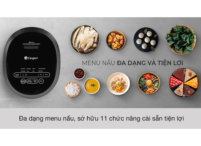 MENU ĐA NĂNG: • Chức năng nấu dinh dưỡng: Qunioa, Steel Cut Oatmeal, Brown, GABA Brown, Steam • Chức năng nấu cơm theo từng loại gạo: Long & Short Grain White, Premium, Congee(Thick & Thin),