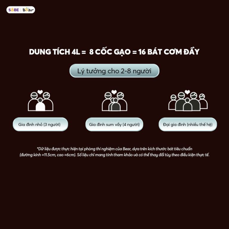 • 8 chế độ nấu tiện lợi. Nồi cơm được trang bị màn hình cảm ứng thông minh với 8 chế độ nấu, giúp bạn dễ dàng lựa chọn chương trình phù hợp chỉ bằng một chạm, không cần cúi người thao tác. Các chế độ đa dạng như nấu nhanh 22 phút, nấu cơm dẻo thơm, hầm súp 2 giờ, hấp bánh, giữ ấm… đáp ứng mọi nhu cầu nấu ăn. Hệ thống điều chỉnh thời gian và nhiệt độ thông minh giúp cơm chín đều, giữ trọn vị ngon. Với thiết kế tối ưu, Bear 4L không chỉ giúp nấu cơm ngon mà còn hỗ trợ chế biến nhiều món ăn khác, mang đến trải nghiệm nấu nướng tiện lợi, hiện đại, phù hợp với mọi gia đình.