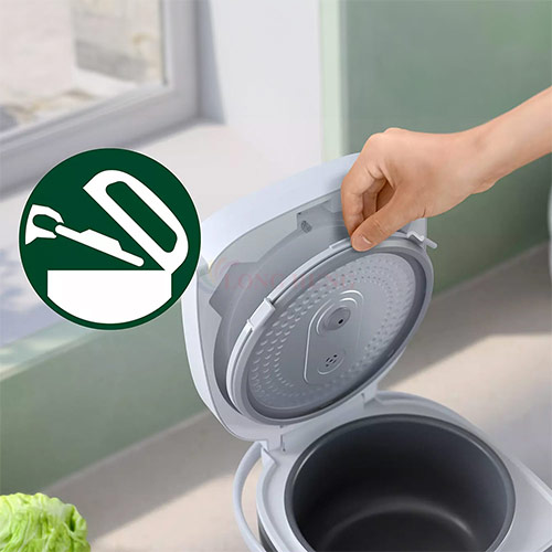 ️ Hẹn giờ lên đến 24 tiếng, với khóa an toàn ️ Chất liệu: + Cốc đong gạo, muỗng múc cơm, xửng hấp bằng chất liệu nhựa PP an toàn khi tiếp xúc thực phẩm