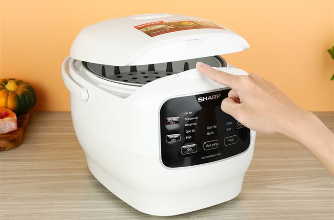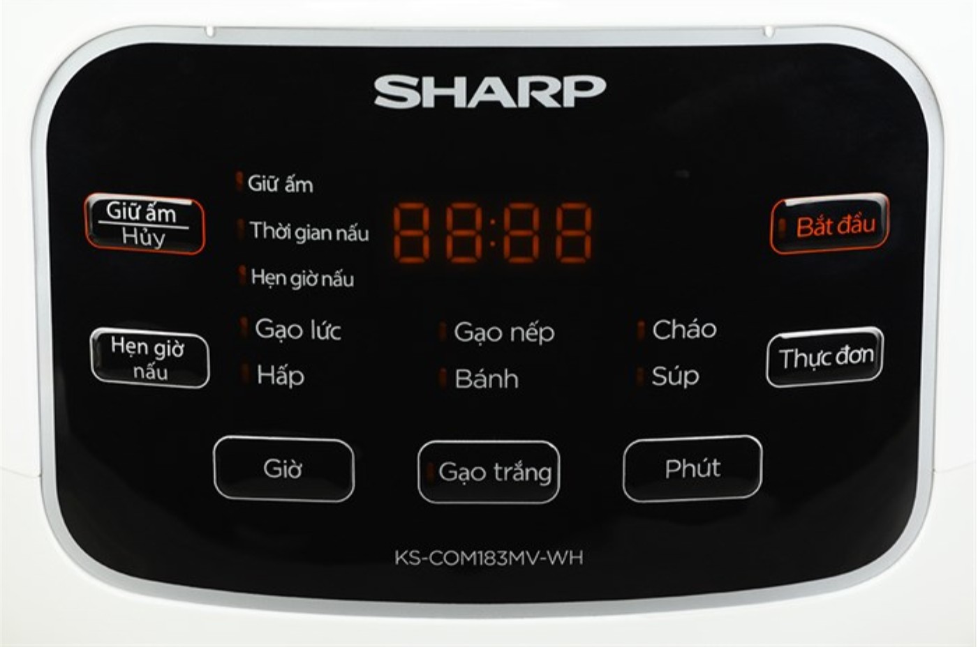 Nồi cơm điện tử Sharp 1.8 lít KS-COM194EV Dung tích: 1.8 lít Công suất: 790W 8 chức năng (Nấu tiêu chuẩn, Nấu nhanh, Gạo lứt, Cơm niêu, cháo, Súp, Hấp, Luộc trứng) Lòng nồi phủ