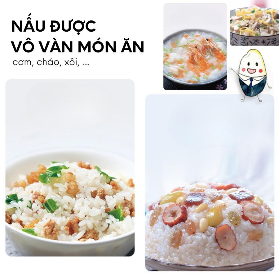 ️ Hẹn giờ lên đến 24 tiếng, với khóa an toàn ️ Chất liệu: + Cốc đong gạo, muỗng múc cơm, xửng hấp bằng chất liệu nhựa PP an toàn khi tiếp xúc thực phẩm