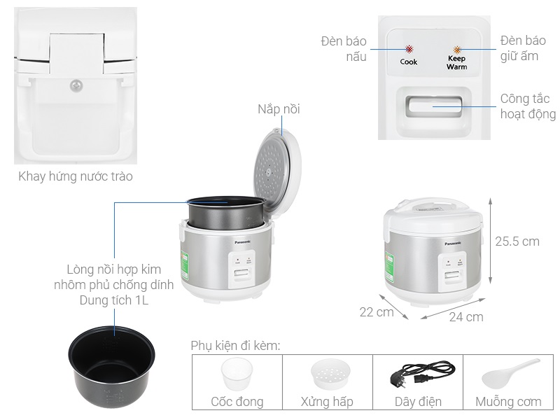 • Phụ kiện đi kèm: xửng hấp, muỗng cơm và cốc đong.