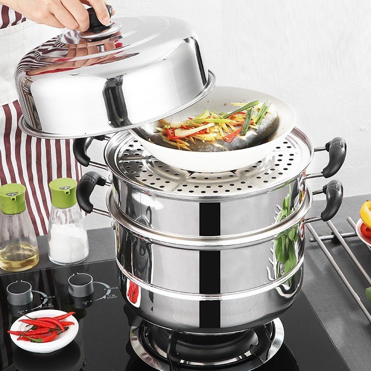 ✨Nồi Hấp 2 Tầng 3 Tầng Kèm Xưởng Hấp Đa Năng 28cm, Nổi Lẩu Dẫn Nhiệt Tốt ( Dùng Được Cho Bếp Từ ) - Hàng nhập khẩu