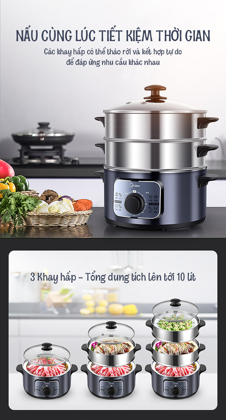Nồi Hấp Điện 3 Tầng MIDEA MZ-ZG26EASY401 Dung Tích 10 Lít hàng chính hãngNồi Hấp Điện 3 Tầng MIDEA MZ-ZG26EASY401 Dung Tích 10 Lít hàng chính hãngNồi Hấp Điện 3 Tầng MIDEA MZ-ZG26EASY401 Dung Tích 10 Lít hàng chính hãng