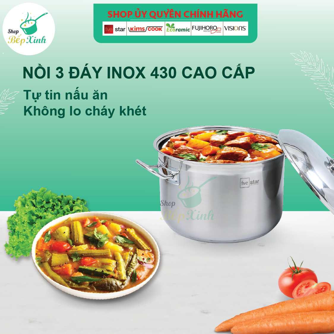 ✨Nồi Inox 430 Bếp Từ 3 Đáy Fivestar (36 cm) Nắp Inox + Tặng 5 Muỗng Ăn Inox Cao Cấp