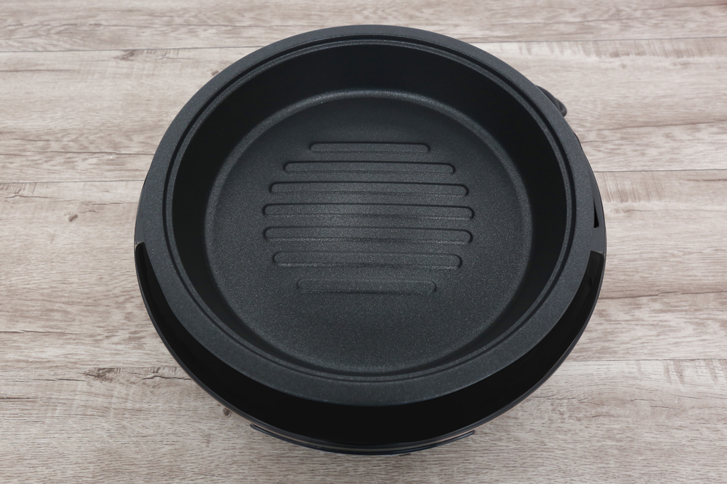 2 trong 1 gồm 2 lòng hợp kim phủ chống dính gốm Ceramic (lòng nướng bằng hơi nước và lòng nồi lẩu ) với 9 chức năng nấu (nấu lẩu, nướng, nướng bằng hơi nước,