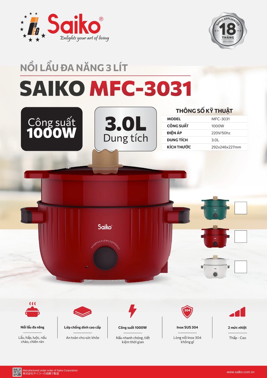 ✨Nồi lẩu điện đa năng 3 lít Saiko MFC-3031 hàng chính hãng