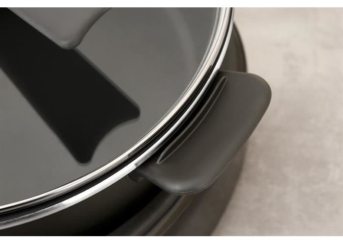 Nắp kính thủy tinh trong suốt, có lỗ thoát hơi Chảo được trang bị nắp nồi bằng thủy tinh trong suốt giúp dễ dàng quan sát thực phẩm trong quá trình nấu và thuận tiện
