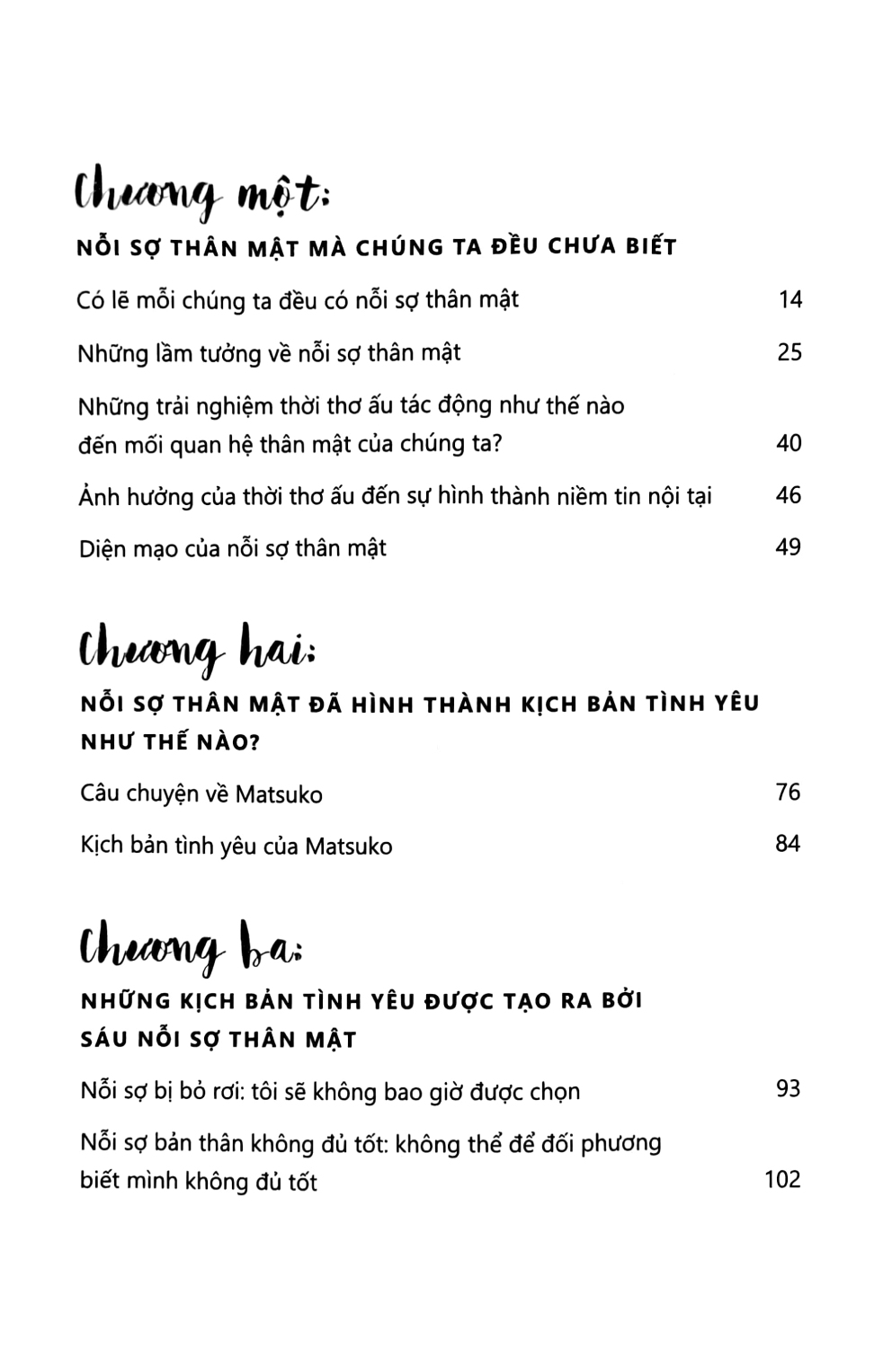 Mua tại TiktokNỗi Sợ Thân Mật Tại sao chúng ta không thể yêu và được yêu một cách hạnh phúc? Vì chúng ta đều đang bị “sa lầy” trong nỗi sợ thân mật của mình. Nỗi sợ thân mật (fear of intimacy) là một chứng sợ xã hội và rối loạn lo âu dẫn đến khó hình thành mối quan hệ gần gũi với người khác. Những người sợ hãi hoặc trốn tránh tình yêu đều có nỗi sợ sự thân mật; nhưng những người luôn làm hài lòng mọi người và khao khát được gần gũi lại càng sợ sự thân mật hơn. Vậy làm thế nào để thoát khỏi “vũng lầy” đó và xây dựng một mối quan hệ tốt đẹp? Câu trả lời nằm trong Nỗi sợ thân mật. Cuốn sách là lời thức tỉnh nhẹ nhàng giúp độc giả tự nhận thức và thấu hiểu bản thân. Hy vọng chúng ta đều có thể đưa ra những lựa chọn mới trong các mối quan hệ thân mật bởi chúng ta đều xứng đáng được hạnh phúc.