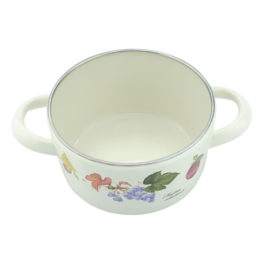 Thiết kế sang trọng, quai cầm và núm nắp chắc chắn Nồi Tráng Men Hoa Văn Trái Cây Sử Dụng Bếp Từ Fujihoro FRV-16W sở hữu thiết kế tinh tế với màu sắc và họa tiết