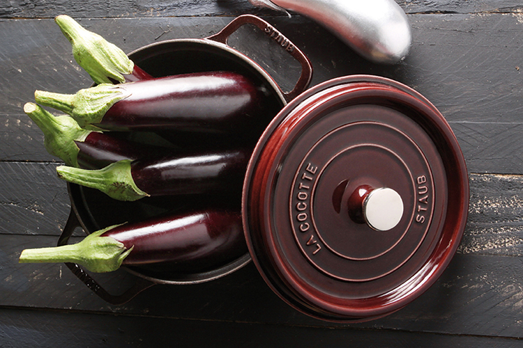 - Nồi tròn Staub bằng gang đúc tráng men - Nồi Tròn Staub – Màu Đỏ Lựu - Thiết kế sang trọng, có thể đặt ngay trên bàn ăn sau khi nấu. - Lớp phủ màu