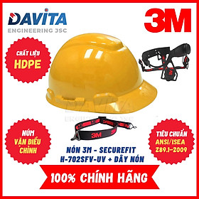 ✨Nón bảo hộ màu vàng mẫu cải tiến 3M SecureFit H-702SFR-UV, đã gồm dây quai nón 1990