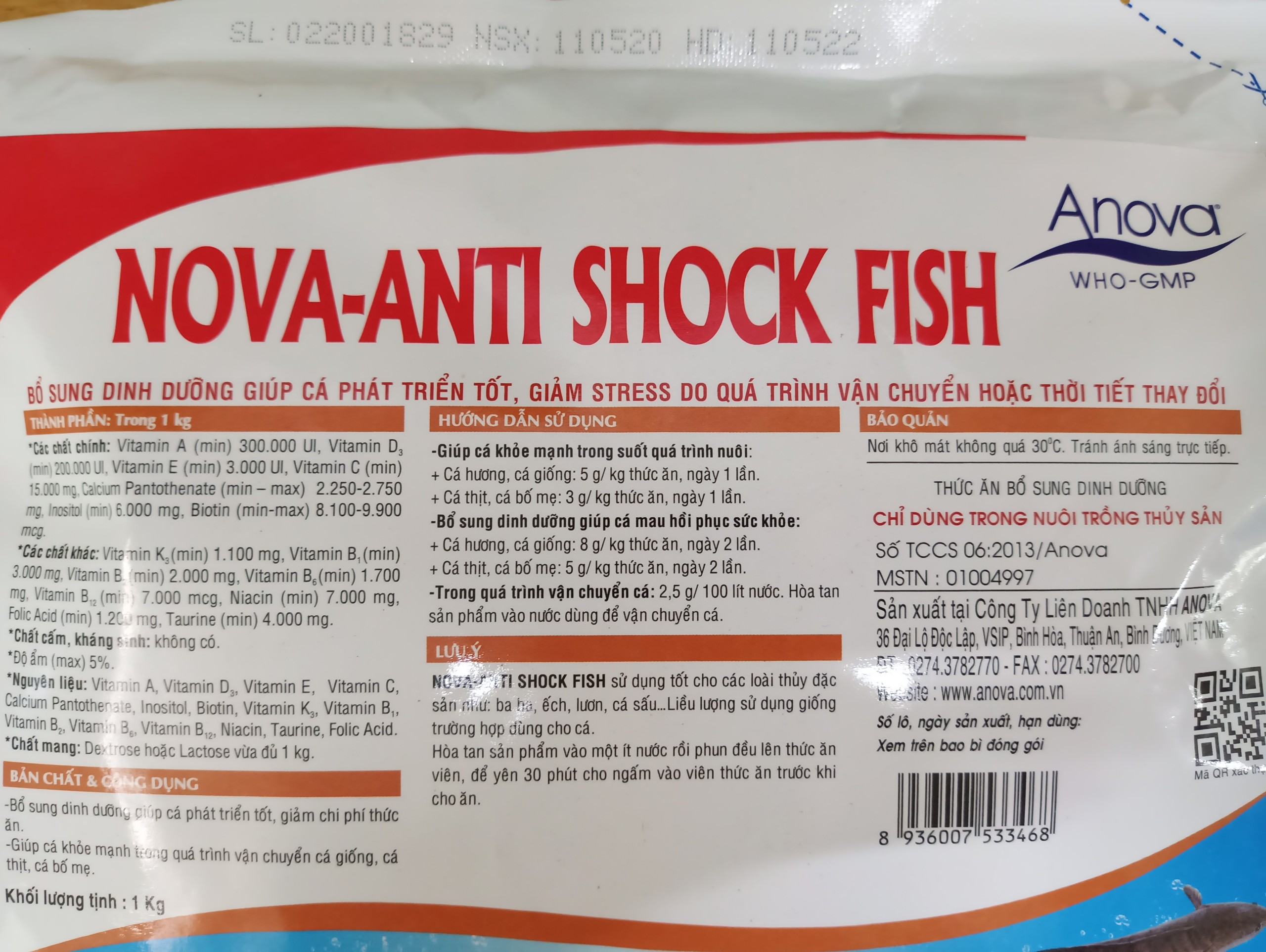 Sản Phẩm Bổ Sung Dinh Dưỡng, Giảm Stress Cho Cá Mã Hàng: NOVA-ANTI SHOCK FISH Hãng Sản Xuất: Anova – Việt Nam NOVA-ANTI SHOCK FISH giúp cá khỏe trong quá trình vận chuyển cá giống, bổ