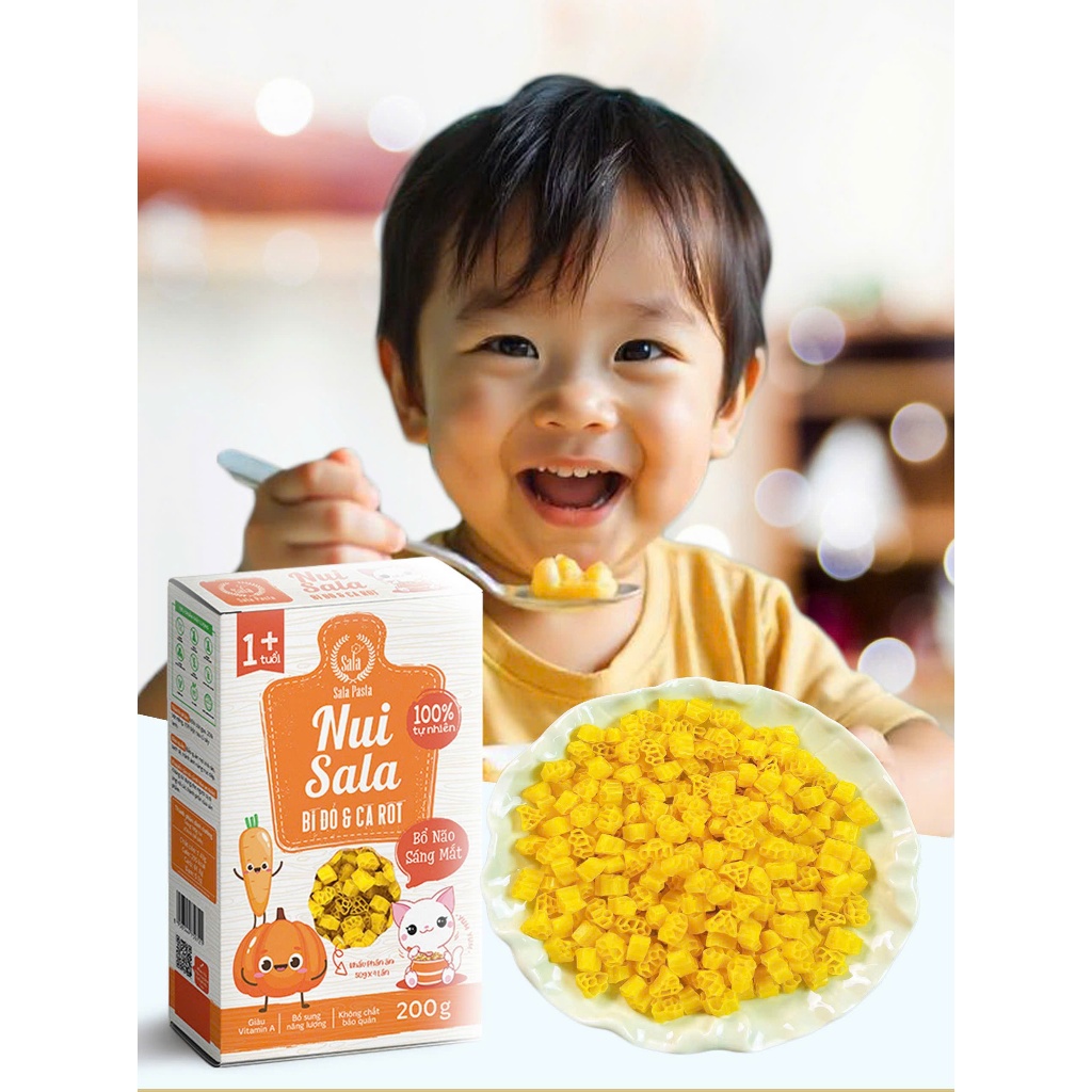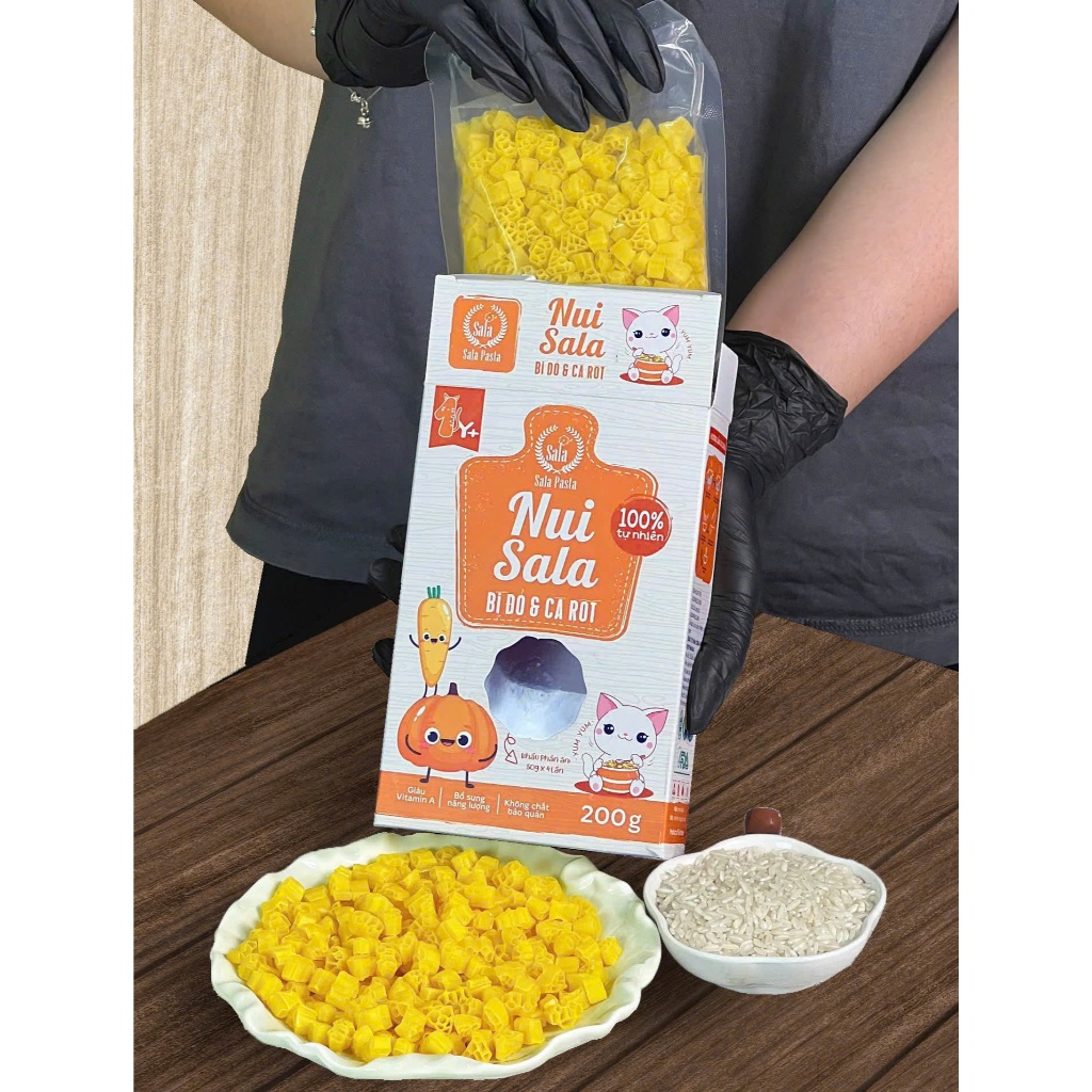 • Nui Sala Bí Đỏ & Cà Rốt Hộp 200g: Làm từ cà rốt & bí đỏ nguyên chất, có vị ngọt nhẹ tự nhiên.