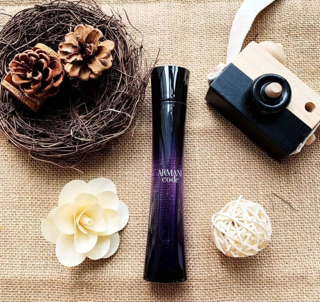 Tầng hương đầu là sự pha trộn giữa hai loại cam khác nhau, đó là Cam đắng và Cam Ý cho ra một khởi đầu đầy sự ngọt ngào và thanh mát. Ở nốt hương trung tâm là Hoa cam, Hoa nhài đan xen cùng với vị cay từ Gừng làm điểm nhấn, đã thật sự tạo nên nốt hương tuyệt đẹp ở tầng hương này. Cuối cùng là sự ngọt ngào của Mật ong, Vanilla và Gỗ đàn hương sẵn sàng từ lâu để chờ đến lượt trình diễn tiết mục của mình. Tất cả đã khiến các giác quan phải xao xuyến và không thể cưỡng nổi vì những xúc cảm đẹp tuyệt vời mà Giorgio Armani Armani Code for Women mang đến.