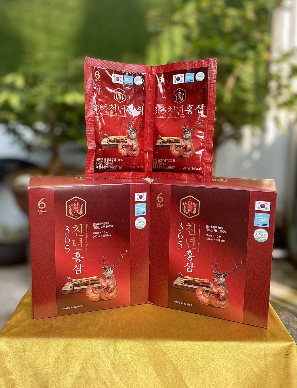̂̀ ̛́ ̉ ̛̀ ̂ ̂ Nước hồng sâm Nhung hươu linh chi 365 hộp 70ml * 60 gói Thành phần: - Chiết xuất hồng sâm 30% - Chiết xuất nhung hươu -