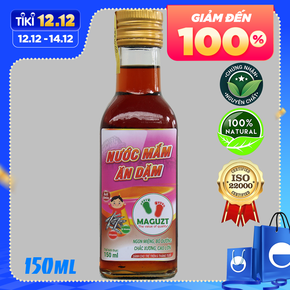 Mua tại TiktokNước mắm cho bé ăn dặm Maguzt được ủ trong 2 năm từ cá cơm Than với muối hạt tinh khiết trong thùng gỗ Bời Lời, có vị thanh, dịu, lượng muối phù hợp với trẻ từ 6 tháng tuổi. Đặc điểm sản phẩm Nước mắm cho bé ăn dặm Maguzt: