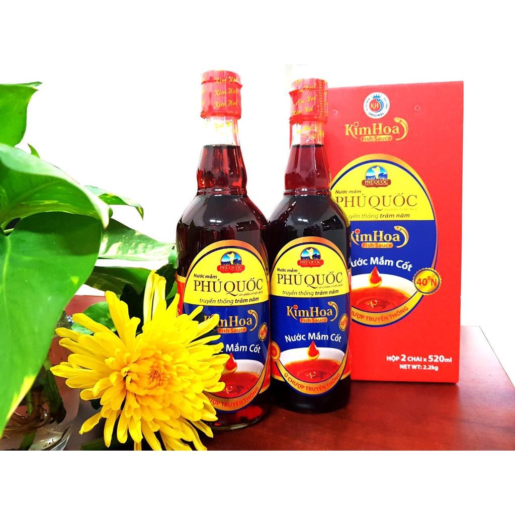 Khác với các loại nước mắm pha chế công nghiệp có sử dụng nhiều chất điều vị và phẩm màu, Nước Mắm Kim Hoa được làm 100% từ Cá Cơm tại vùng đảo Phú Quốc - là loại cá cơm giàu đạm, tươi ngon. Cá cơm sau khi được đánh bắt lên sẽ được ướp ngay trên tàu theo tỷ lệ 3 cá 1 muối, khi thuyền cập bến cá được đưa lên thùng, kiểm tra độ mặn và tiến hành gài nén - ủ chượp trong thùng gỗ đặc trưng. Quá trình này bắt buộc phải từ 12 tháng trở lên, để cá được thuỷ phân hoàn toàn, khi đó nước mắm được kéo rút ra sẽ có màu cánh gián đặc trưng, hương vị đậm đà và cái hậu ngọt của đạm cá được lắng đọng và cảm nhận rõ nơi cuống họng. Chính vì thế, nhiều khách hàng trước có thói quen sử dụng nước mắm công nghiệp khi nếm nước mắm Kim Hoa lần đầu sẽ cảm thấy mặn.