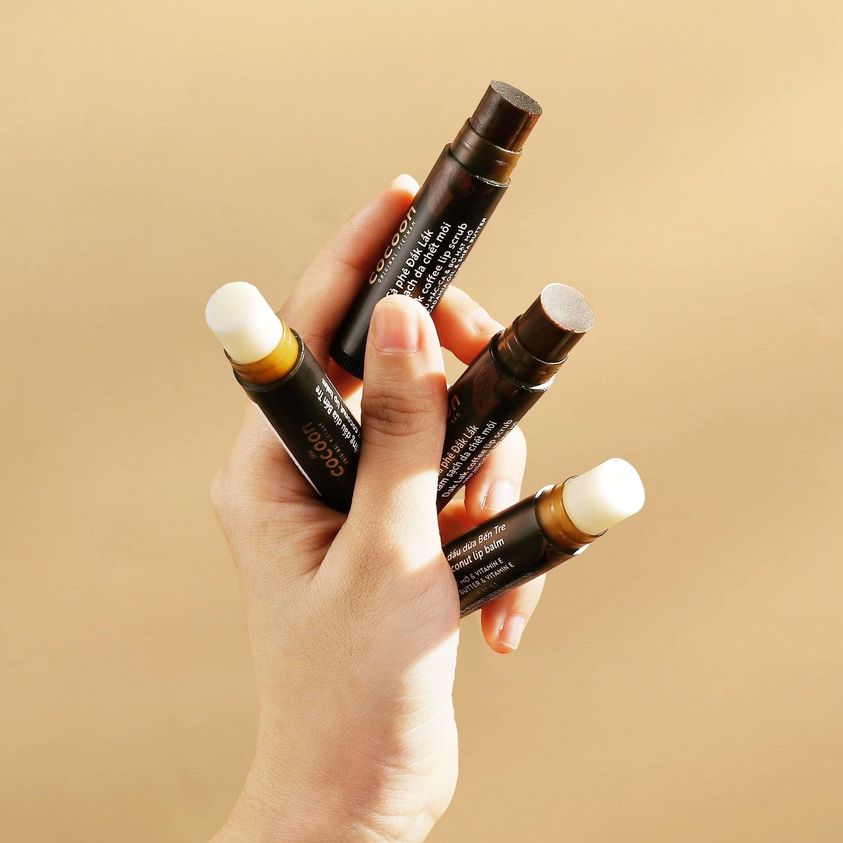 - Mang lại làn môi ẩm mềm và mịn màng Thành phần chính Cà phê đắk lắk làm sạch da chết môi cocoon