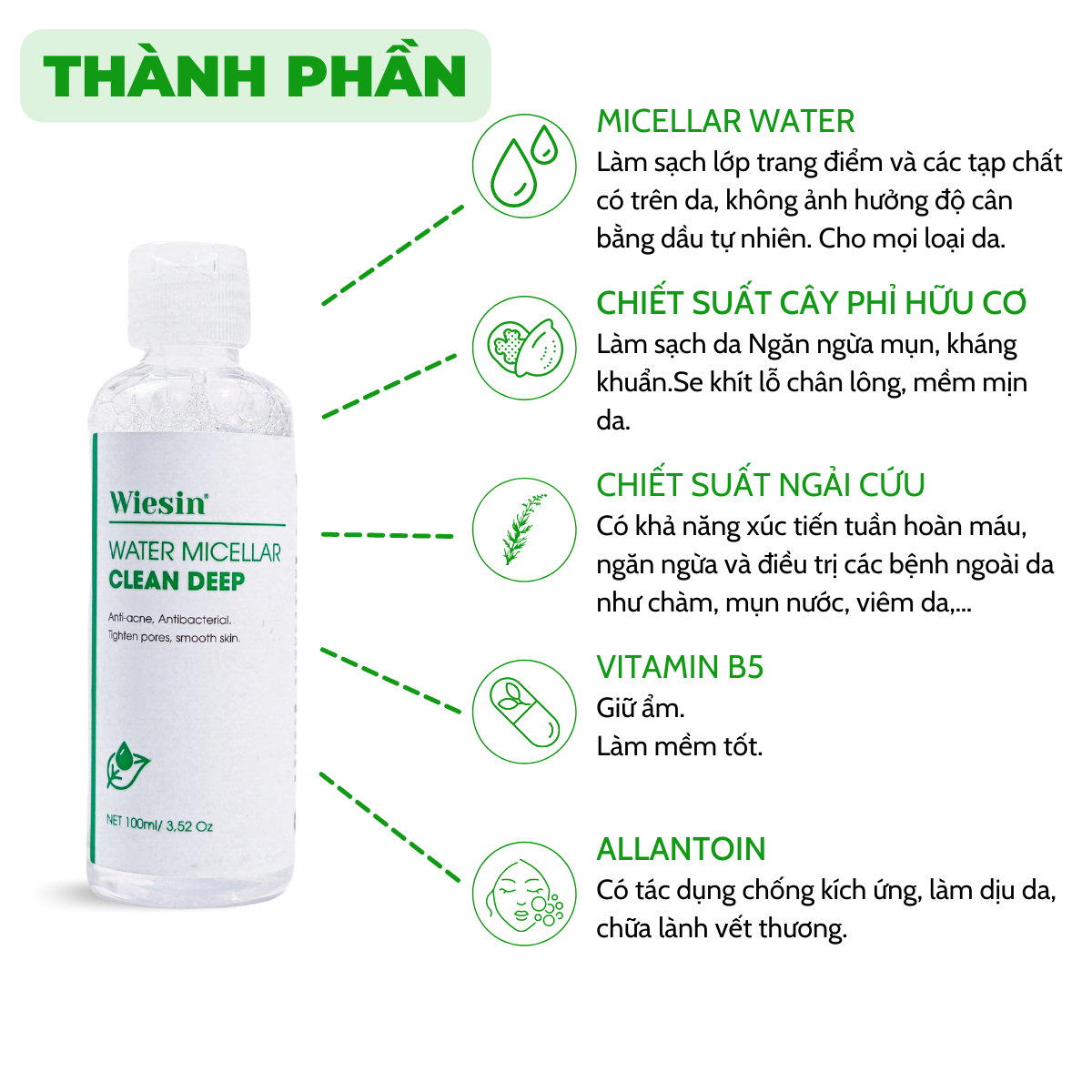 - CÔNG DỤNG NƯỚC TẨY TRANG WIESIN: