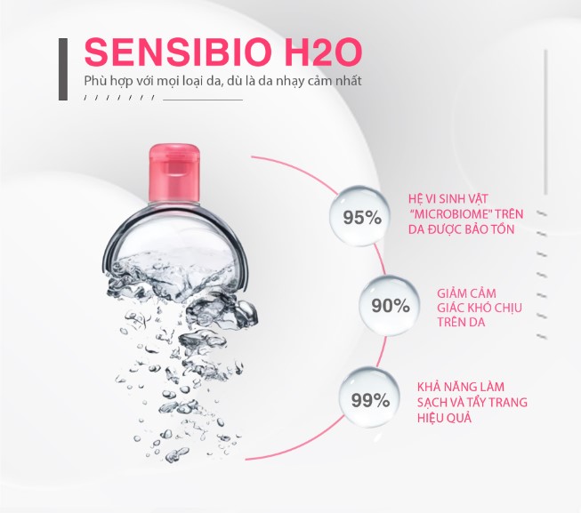 Mua tại TiktokBioderma Sensibio H2O là dung dịch làm sạch và tẩy trang đầu tiên trên thế giới ứng dụng công nghệ micellar, giúp làm sạch đến 99% bụi bẩn, dầu thừa và lớp trang điểm, đồng thời vẫn tôn trọng hàng rào bảo vệ da tuyệt đối. Sản phẩm không cần rửa lại bằng nước. Ngoài ra, Sensibio H2O làm giảm cảm giác khô căng, khó chịu và cải thiện ngưỡng dung nạp của da. Là giả pháp hiệu quả lâu dài cho làn da. ĐỐI TƯỢNG: Dành cho mọi loại da, đặc biệt là da nhạy cảm, kém dung nạp, dễ bị kích ứng, dị ứng và ửng đỏ. SÁNG CHẾ & TÁC ĐỘNG SINH HỌC: