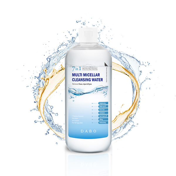 Công dụng: Nước tẩy trang đa năng 7 tác dụng DABO MULTI MICELLAR WATER chiết xuất từ thành phần thiên nhiên như tinh chất Collagen, Trà xanh, Dầu dừa, Hương thảết hợp với công nghệ Mi-xen tăng cường oxy (Micellar) hoạt động như nam châm thông minh tự động hút sạch các lớp cặn trang điểm, bụi bẩn, tăng cường khả năng hấp thu oxy từ đó hỗ trợ quá trình sản sinh Collagen mà không lấy đi độ ẩm tự nhiên của da, không gây kích ứng da, không gây rát, không gây nhờn, không gây khô da. Đặc biệt còn giúp da mặt săn chắc, thu nhỏ lỗ chân lông, làm sạch lớp da chết, bổ xung độ ẩm cho da. Sản phẩm dùng để làm sạch lớp kem Chống nắng, lớp trang điểm trên Da mặt, vùng Mắt, Môi. Thích hợp với mọi lại da.