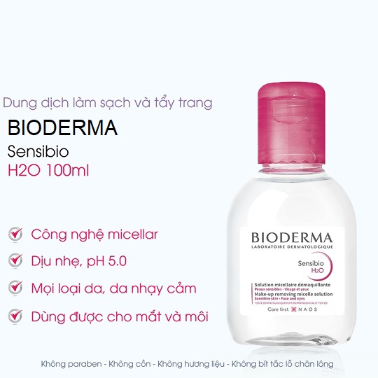 - Nước tẩy trang Bioderma Sensibio H2O là dung dịch làm sạch và tẩy trang dạng hạt mixen (micelle) dành cho vùng mặt và mắt, dành cho da nhạy cảm. - Công dụng: Nước tẩy