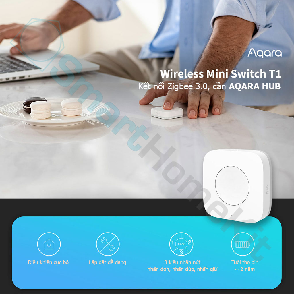 Công tắc mini không dây Aqara T1 là công tắc điều khiển từ xa không dây kiểu mới, hỗ trợ ba chế độ điều khiển là nhấn đơn, nhấn đúp và nhấn lâu. Nó có thể được đặt ngẫu nhiên tại vị trí yêu cầu hoặc có thể được dán để cài đặt và sử dụng. Nó thực hiện nhiều ngữ cảnh thông minh bằng cách liên kết với trung tâm và kết hợp các thiết bị thông minh khác.