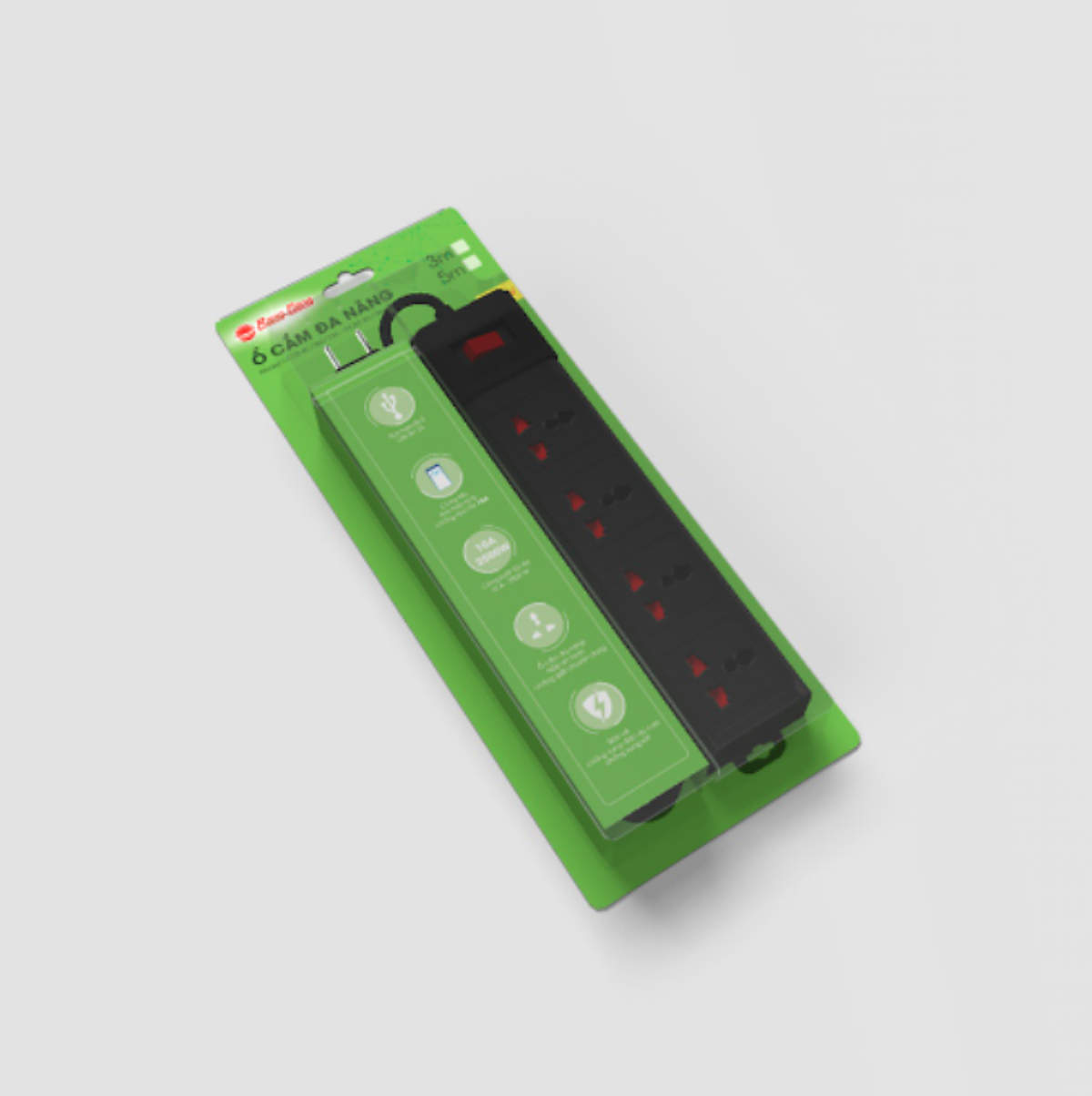 Ổ cắm đa năng 5m Model: OC02 4C/5M/10A Tìm sản phẩm tương tự Điện áp hoạt động tối đa: 250VAC Dòng điện ổ cắm tối đa: 10A Công suất ổ cắm tối đa: 2500W Dải