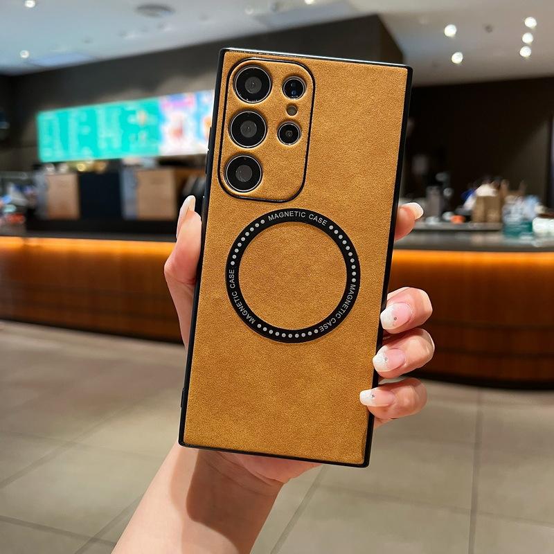 Ốp lưng da có vòng magsafe hỗ trợ sạc không dây tiện lợi cho máy Samsung Galaxy S24 Ultra / S23 Ultra / S22 Ultra / S22 Plus