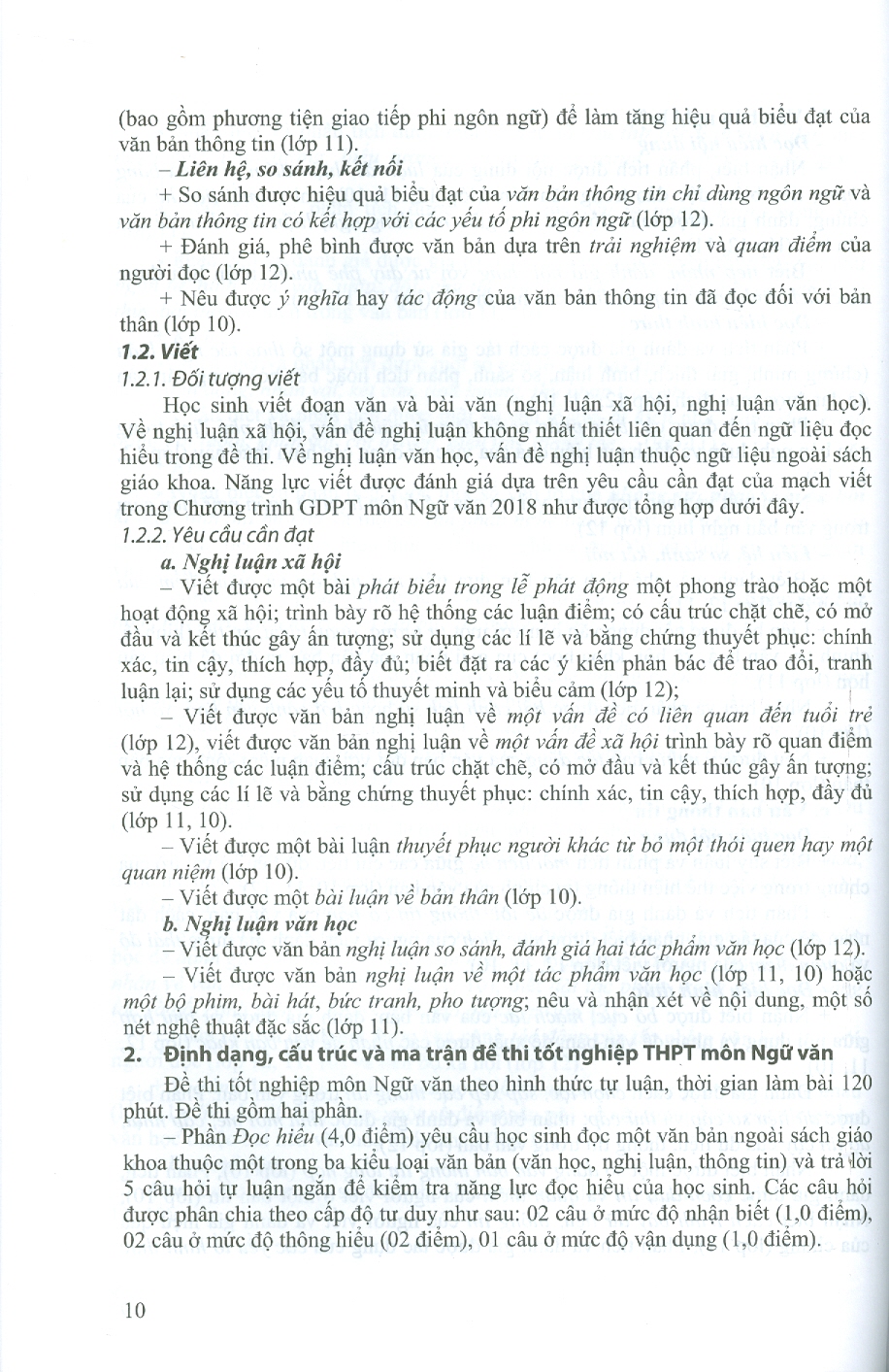 Cấu trúc, định dạng ma trận đề thi tốt nghiệp THPT môn Ngữ Văn - Tổng ôn Tốt nghiệp Ngữ văn 12